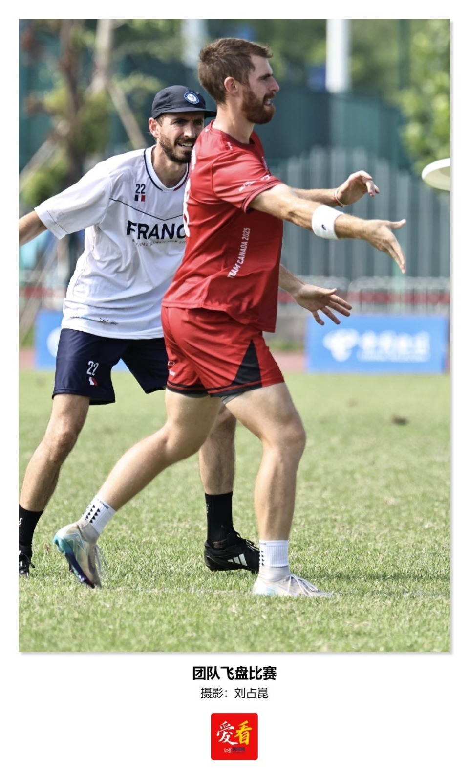 红星新闻网(特约摄影 刘占崑)8月13日报道 8月13日,2025成都世界运动会团队飞盘比赛在成都体育学院三岔湖校区田径场举行。比赛双方是法国队和加拿大队(红色服装),双方水平接近,都打出精彩配合,比分交替上升,直到比赛最后才决出胜负,加拿大队以13:11获胜。